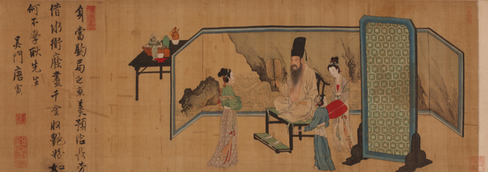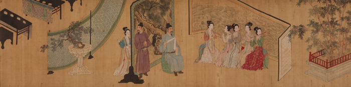nankingart.com - /sf/17、明/唐寅/唐寅《临韩熙载夜宴图题诗》绢本行书 重庆中国三峡博物馆藏唐寅《临韩熙载夜宴图》绢本设色 30.8×547.8cm 重庆中国三峡博物馆藏/