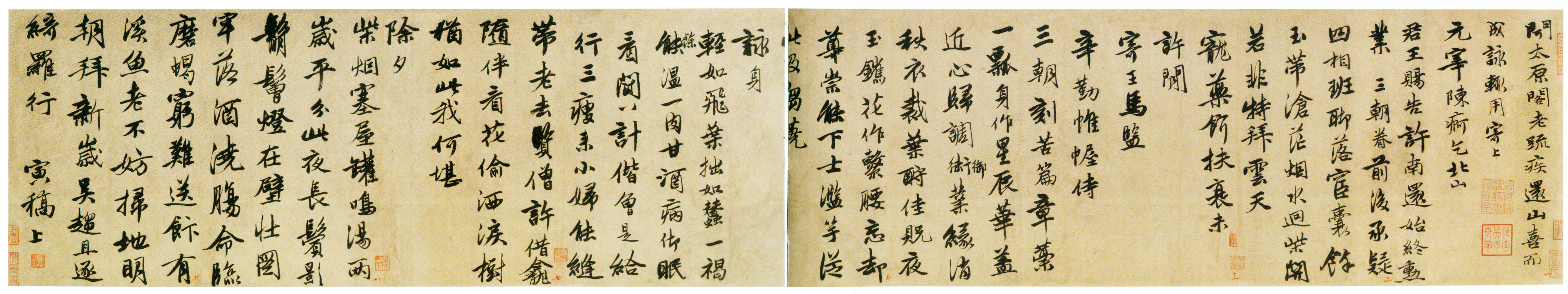 nankingart.com - /sf/17、明/唐寅/唐寅《行书七律四首诗卷》纸本行书 23×286cm 天津博物馆藏/