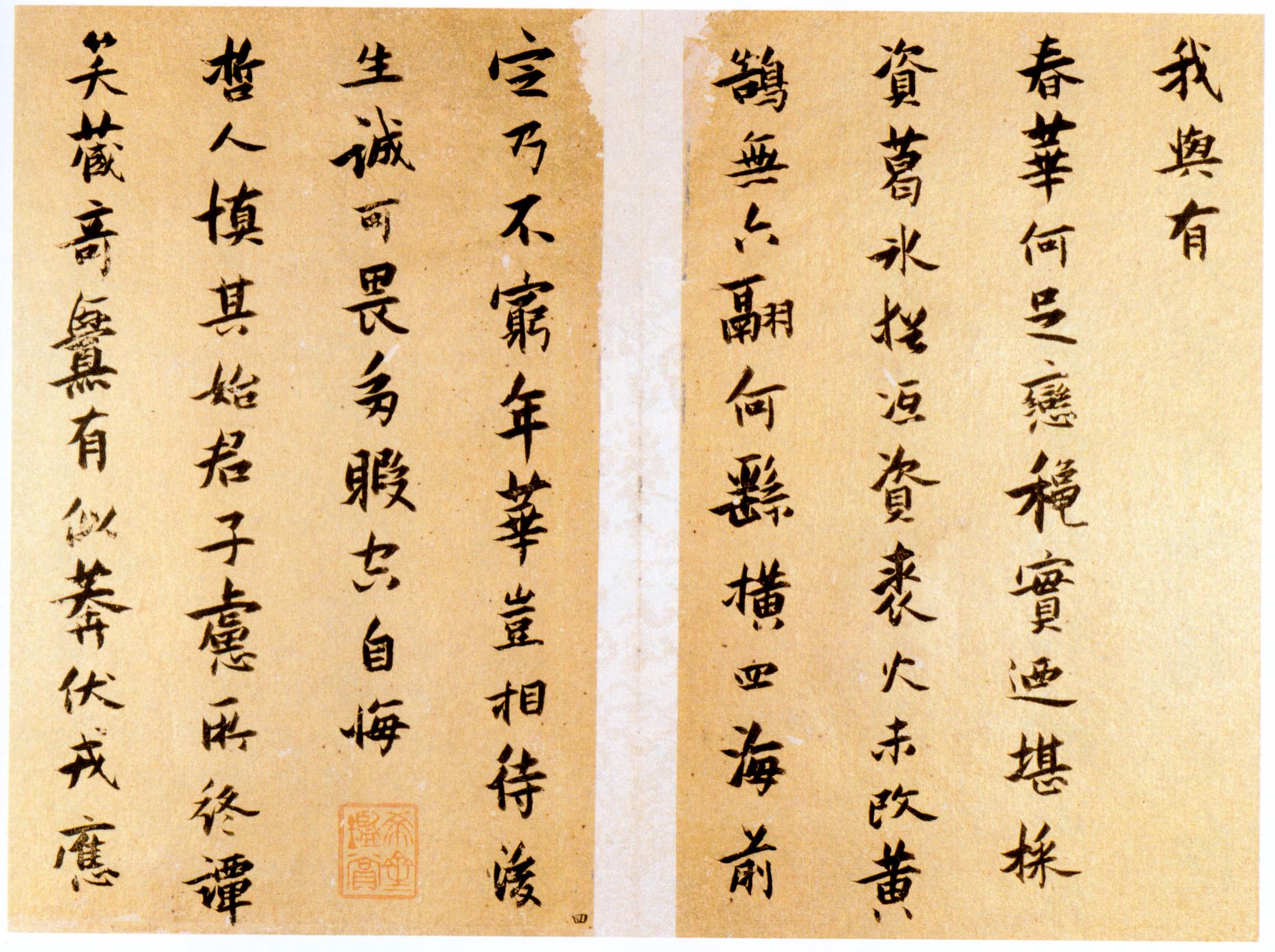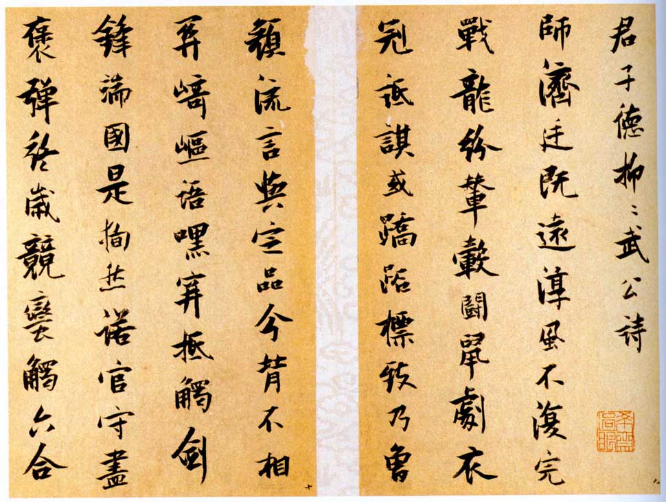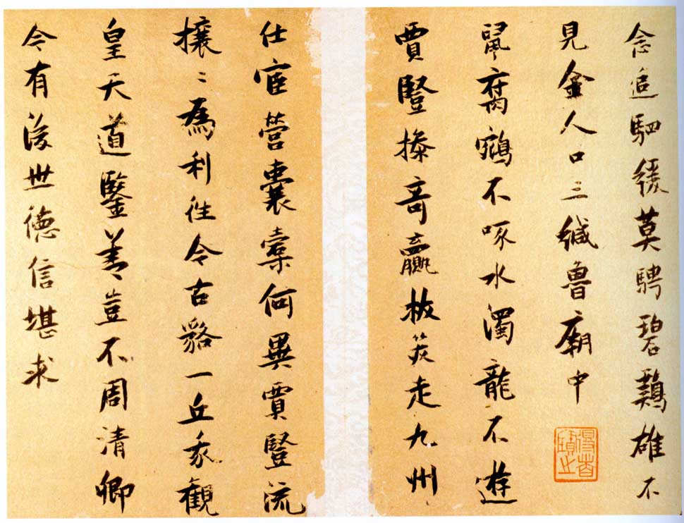 nankingart.com - /sf/17、明/张瑞图/张瑞图《送康侯杨外孙北上七篇》册 金笺 行楷书 册页 每开20.4×13cm 崇祯十一年(1638)北京故宫博物院藏/